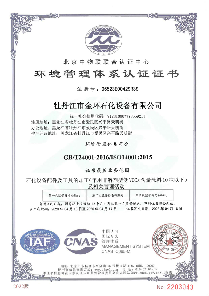 環(huán)境管理體系證書