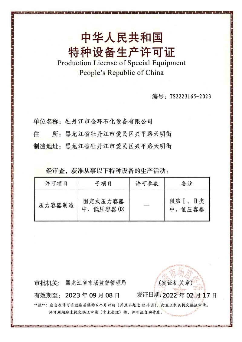 Mudanjiang Jinhuan Petrochemical Equipment CO.,LTD 牡丹江市金環(huán)石化設(shè)備有限公司 版權(quán)所有 www.kichow.com